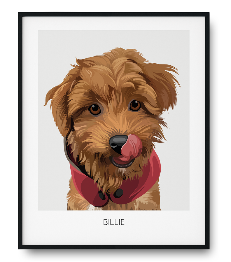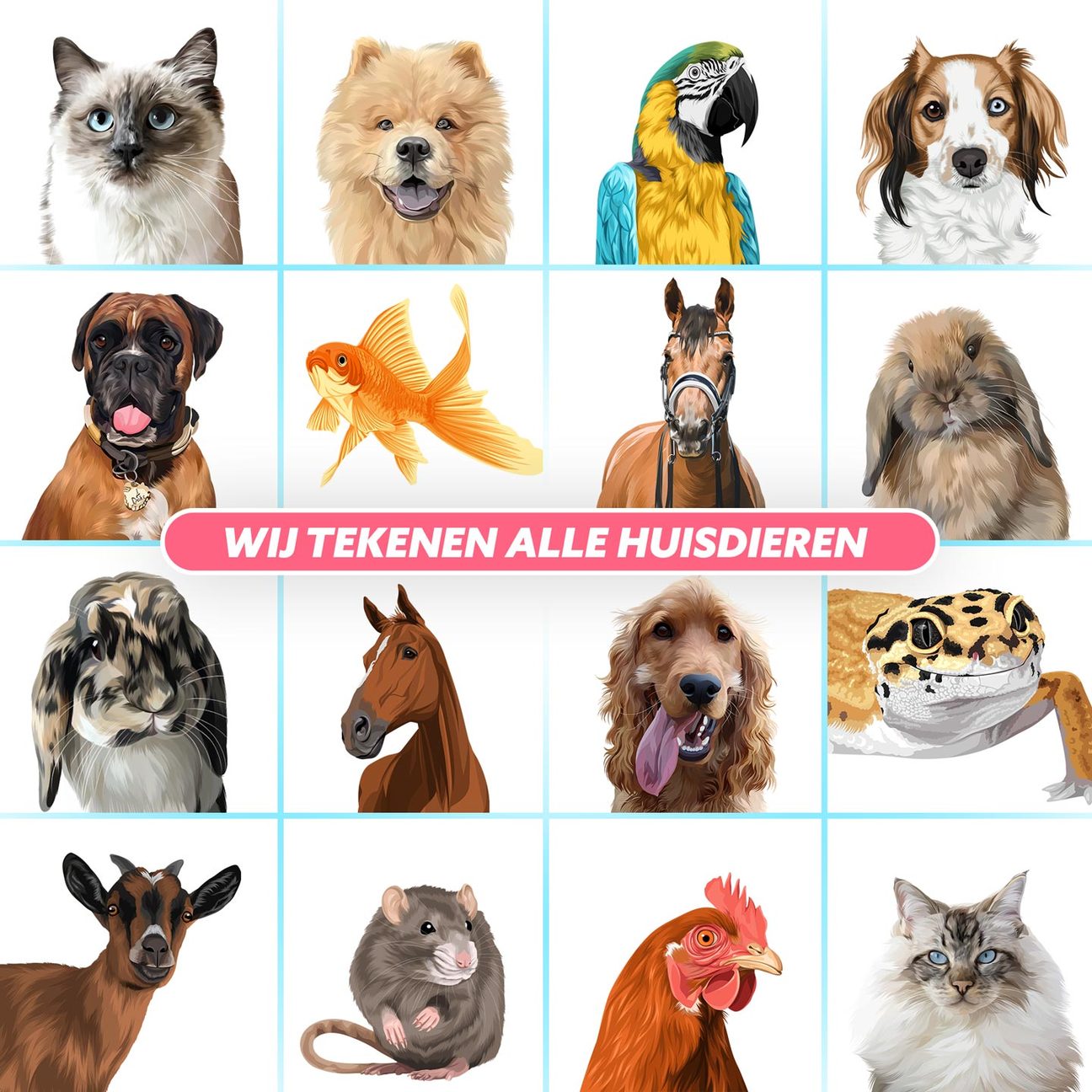 The craziest thing we ever drew? That was a bird on a horse's back! So whether you have a dog, cat, rat, or turtle: you're always welcome at MyPetFrame! Our artists will lovingly create something for your pet.